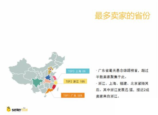 3月1日消息,日前,跨境出口軟件服務商賽兔根據賽兔系統2015年的數據發布了一份跨境出口電商賣家報告。據該報告顯示,廣東是賣家最多省份,位踞榜首,占比58%...[查看詳細]